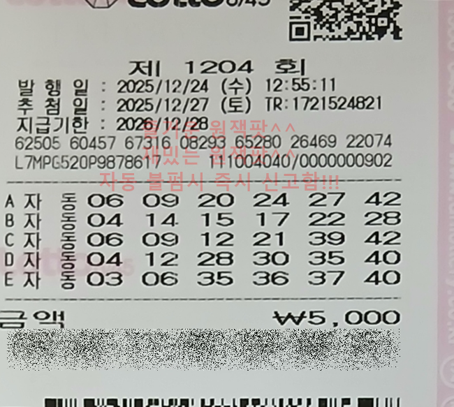 | 1204회 수요일 로또 완자! (0) | 2025.12.24 |