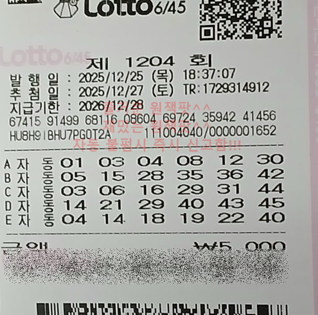 | 1204회 금요일 로또 완자! (0) | 2025.12.26 |