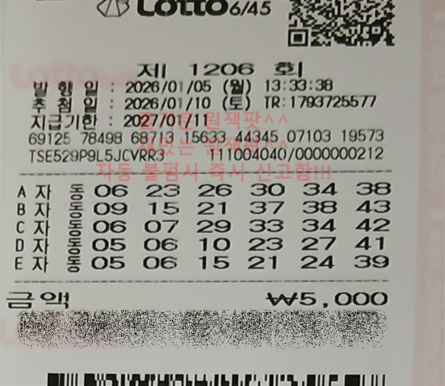 | 1206회 월요일 로또 완자! (0) | 2026.01.05 |